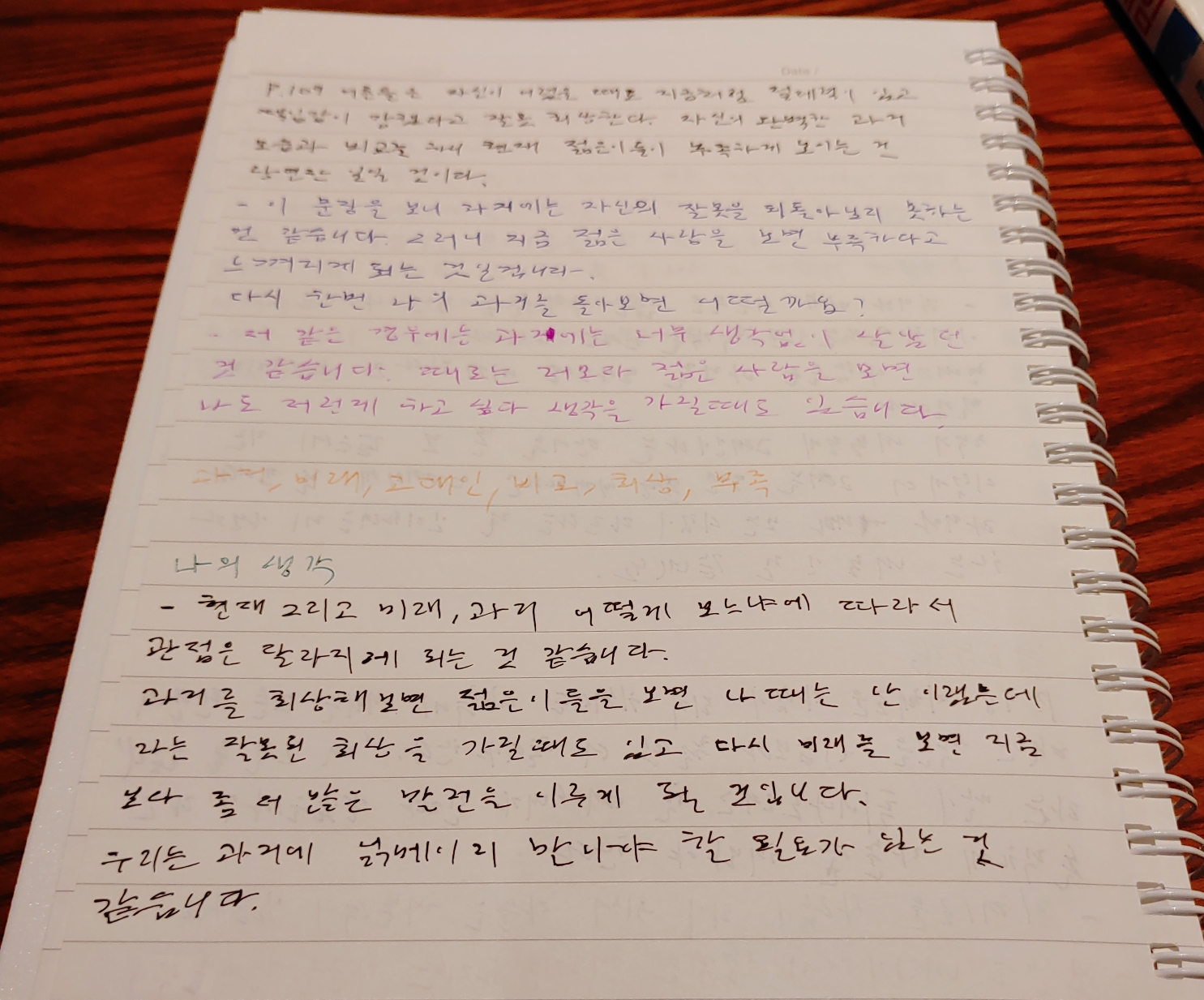 과거를 회상해 보면 젊은이들을 보면 나는 이러지 않았는데라는 잘못된 회상을 가질 때도 있고 다시 미래를 보면 지금보다 좀 더 많은 발전을 이루게 되는 것을 보게 되는 것 같습니다.