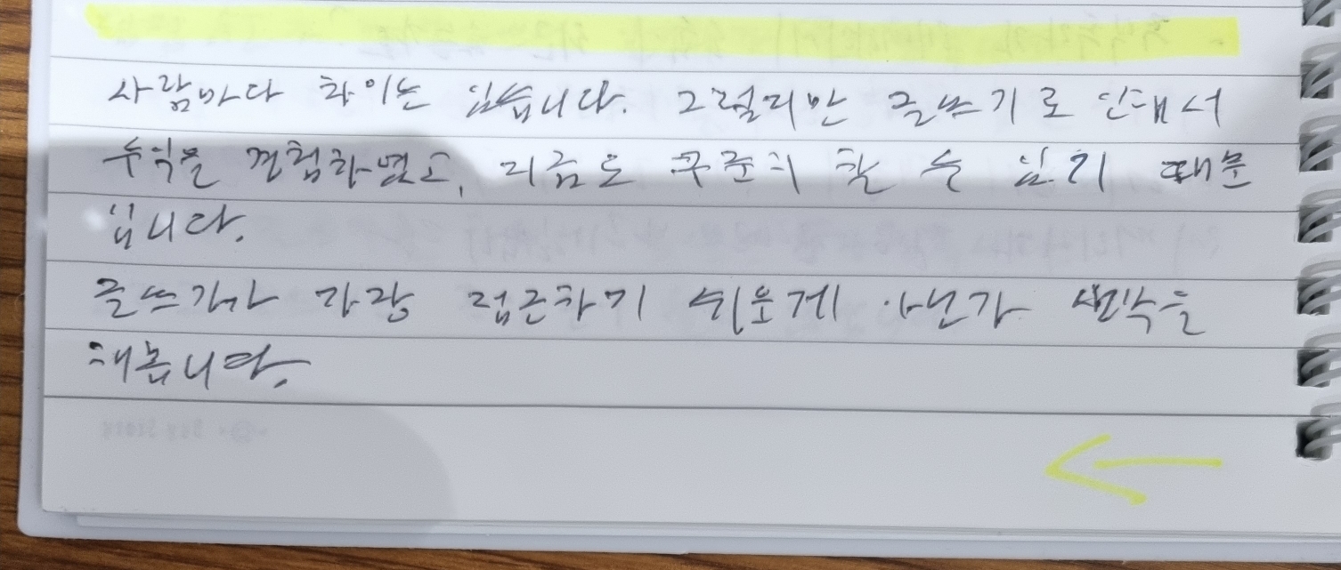 - 글쓰기는 기본적으로 돈이 들지 않는다고 합니다. 확실히 글쓰기는 가장 쉽게 접근할 수 있는 것 같습니다.