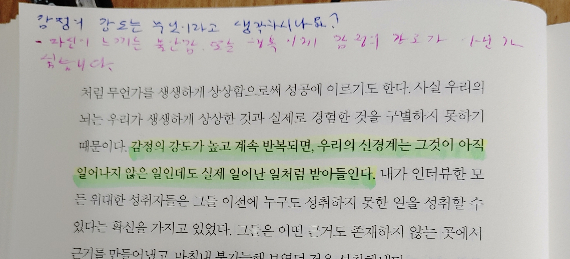 감정의 강도가 높고 계속 반복되면, 우리의 신경계는 그것이 아직 일어나지 않은 일인데도 실제 일어난 일처럼 받아들입니다.