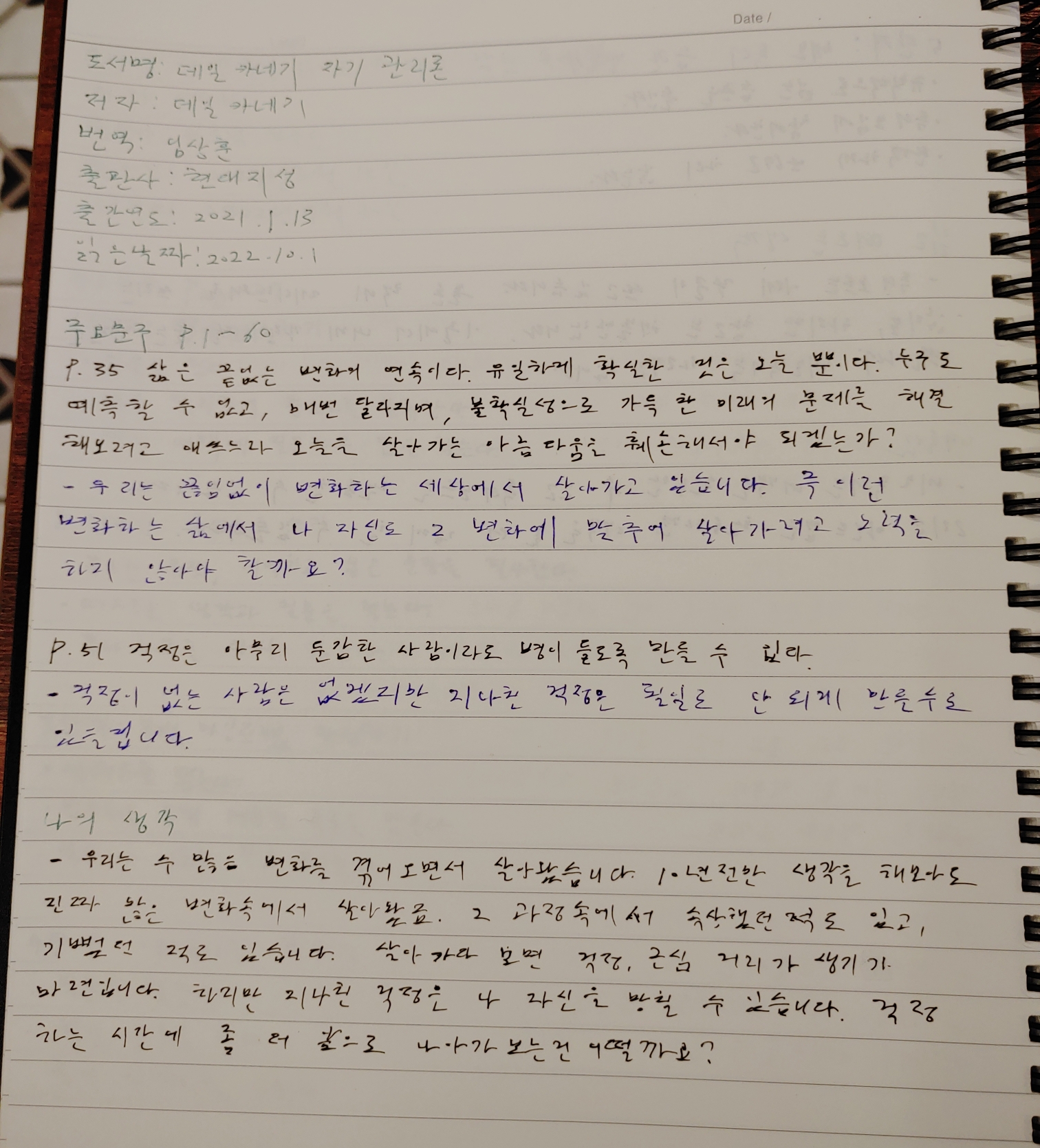 | 마음가짐이 결국 행동까지 하게 만들꺼다. (0) | 2022.10.07 |