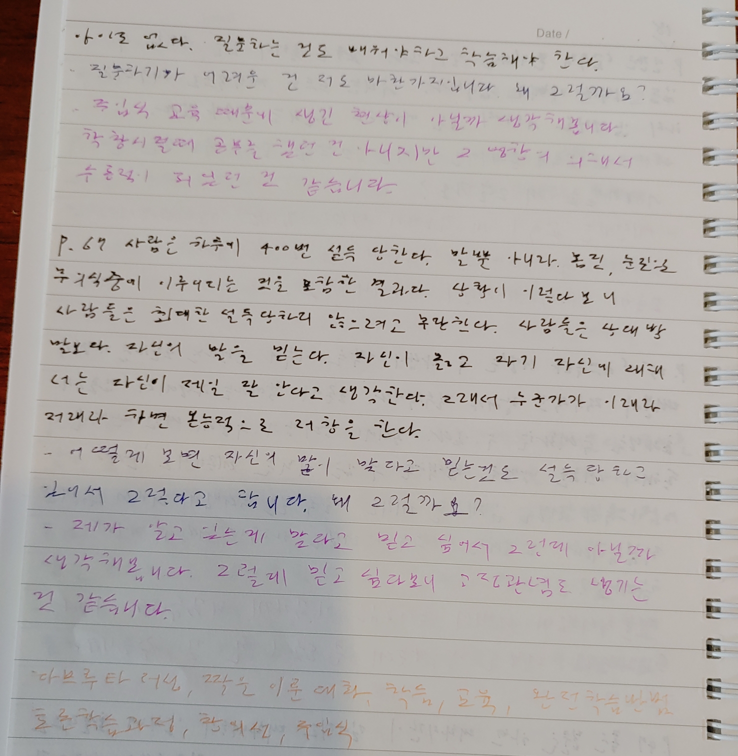 - 예전에는 교육이 왜 필요하지 생각을 했지만 책을 읽으면서 교육은 정말 중요하다고 생각하게 된 것 같습니다.