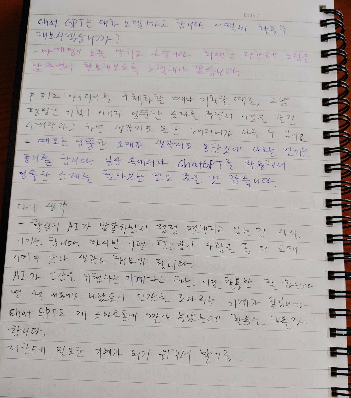 일단 스마트폰에 ChatGPT를 깔아놓았습니다. 생각이 막혀있을 때 활용해도보독 하겠습니다.